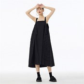 レディース ワンピース エプロン 無地 カジュアル シンプル 2色 ロング丈