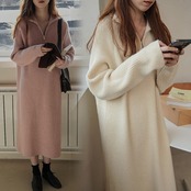 【4色】ハーフジップゆったりニットワンピース 新作