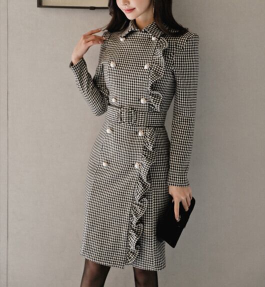 2024年秋冬新作 ワンピース レディース フォーマル 千鳥格子 スリム 通勤 OL 気質 オシャレ パーティー