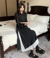 秋冬新作 女 レディース ハイウエスト 長袖 ロング ワンピース 台型スカート S-2XL