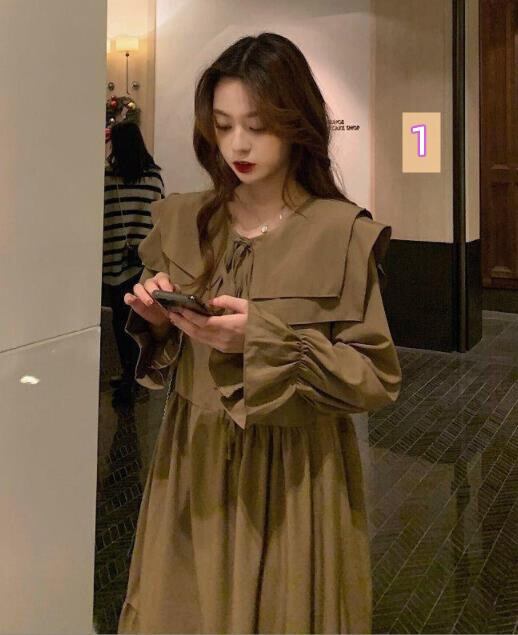 秋冬新作 女 レディース ハイウエスト 長袖 無地 ロング ワンピース 台型スカート S-XL