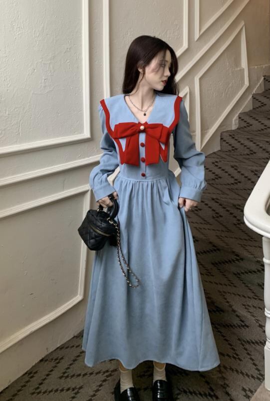 秋冬新作 女 レディース ハイウエスト 長袖 コールテン ロング ワンピース 台型スカート S-L