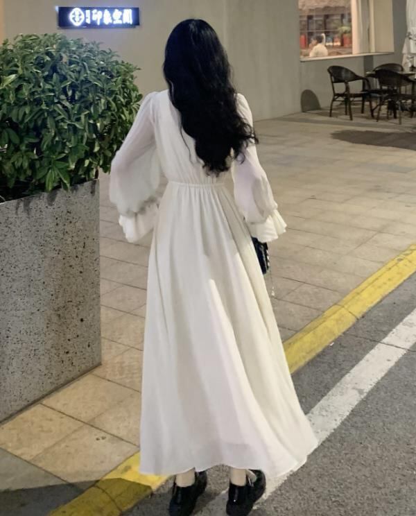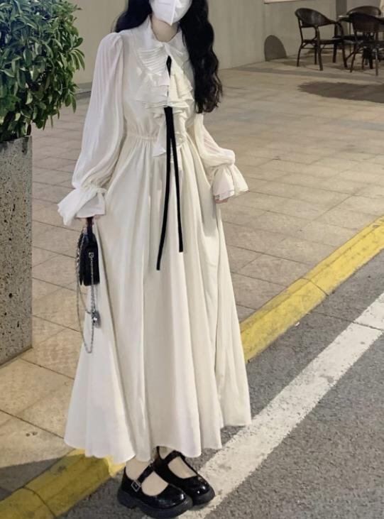 秋冬新作 女 レディース ハイウエスト 長袖 ロング ワンピース 台型スカート S-L