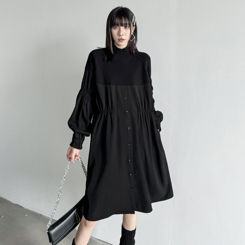 ロングワンピース ステンカラー レディース 秋冬新作 保温 長袖 韓国風