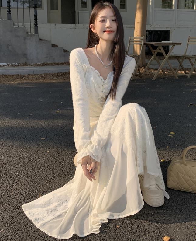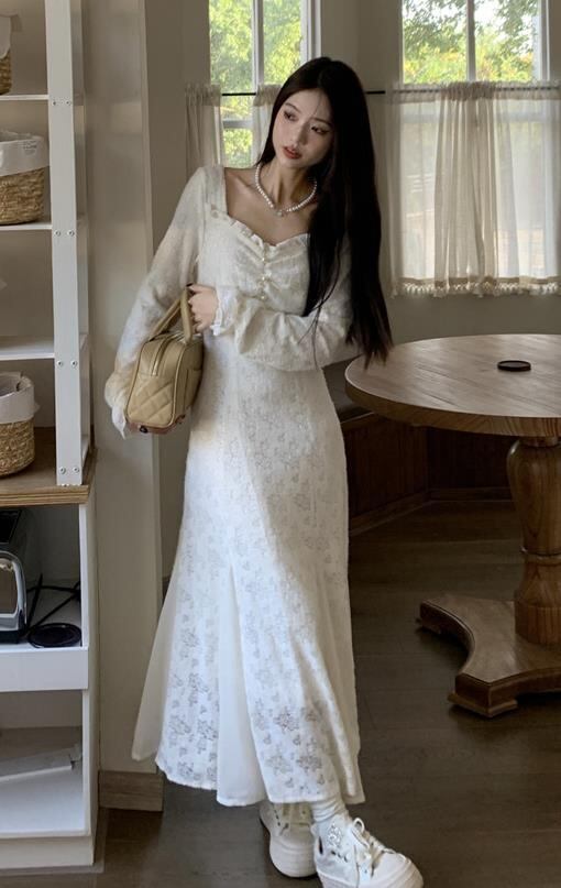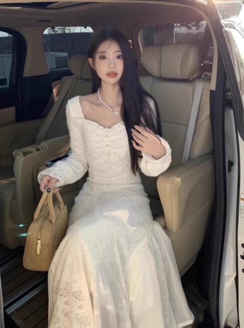 2024秋冬新作 女 レディース ハイウエスト 長袖 ロング ワンピース 台型スカート