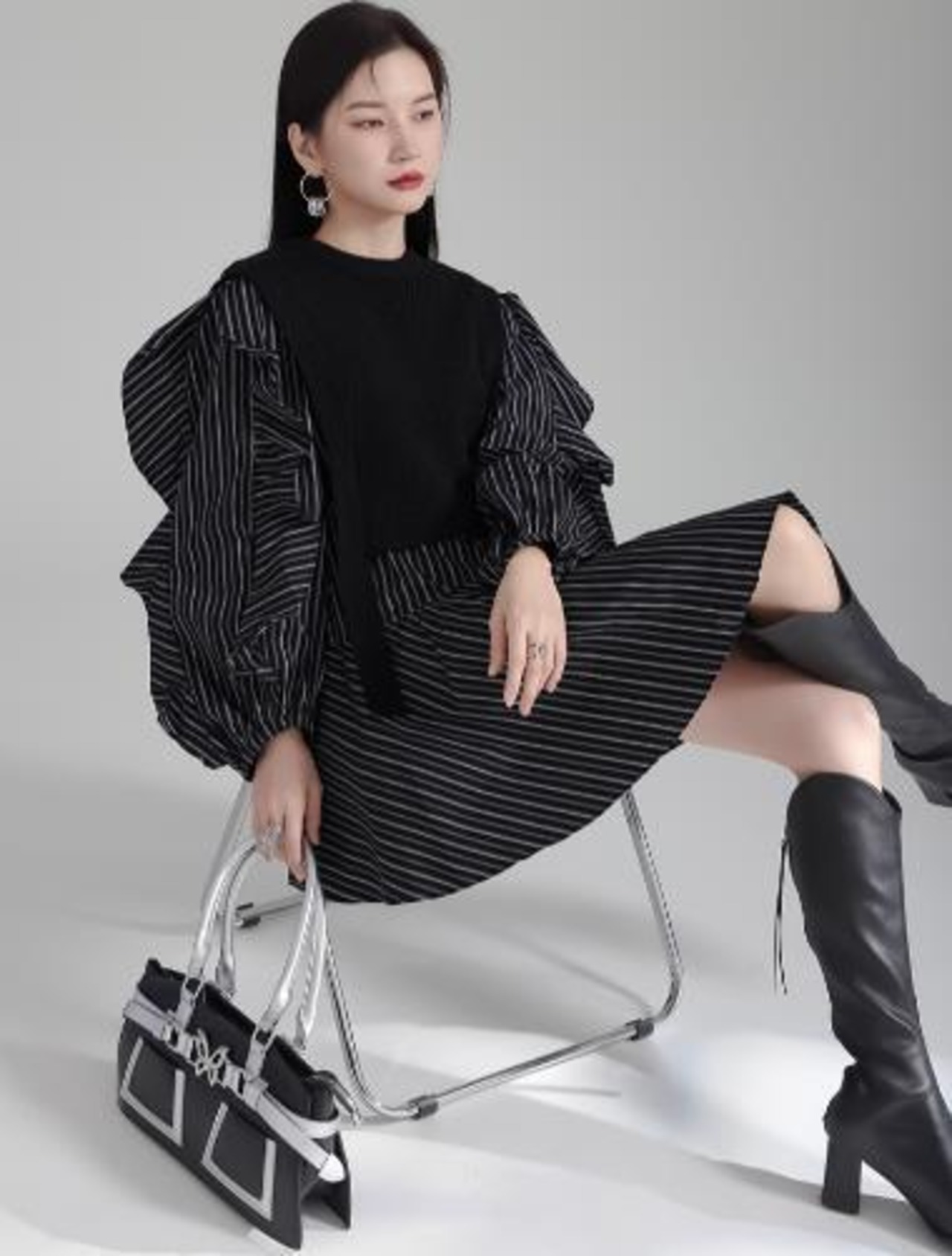 レディース トップス シャツ 保温 ベスト 長袖 ワンピース カジュアル