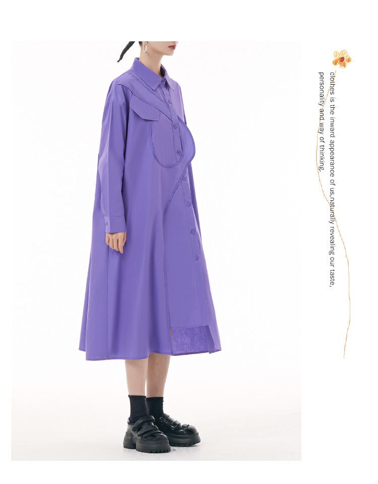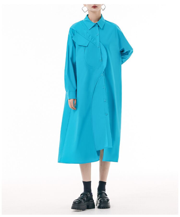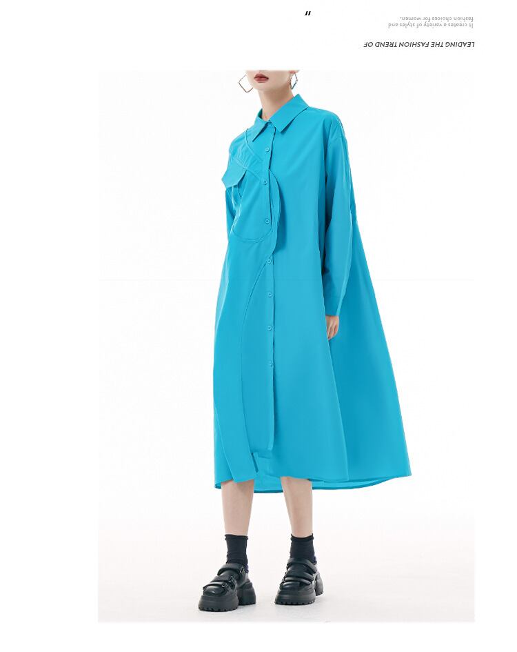 レディース シャツワンピース 無地 シンプル ロング丈 3色 ファション 不規則