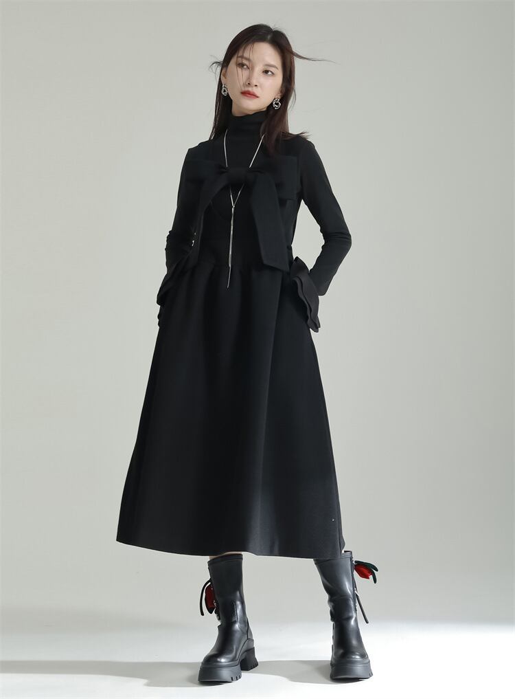 2色 レディース ワンピース ロング 上品 可愛い 無地 エレガンス 保温
