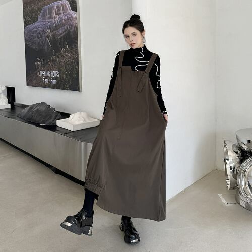 レディース ワンピース 無地 日系 シンプル 通勤 デザイン ロング丈 ヴィンテージ